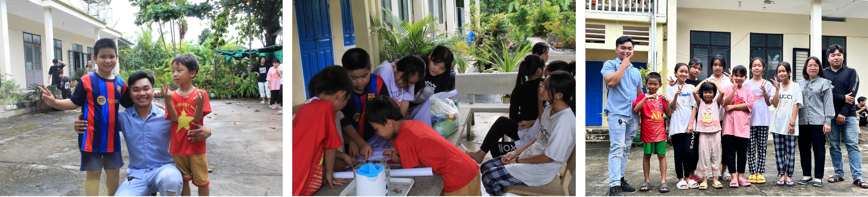 As soon as they arrived at the home, the members were greeted with eagerness and joy and a glass of sweet and fragrant coconut water. Here, we seem to be "reliving" our childhood again with the innocent smiles of the children and activities such as telling each other stories and dancing together...